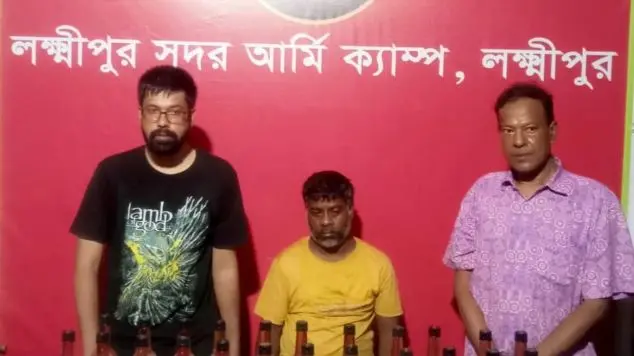 লক্ষ্মীপুর সেনা ক্যাম্পের কমান্ডার ক্যাপ্টেন মো. রাহাত খান জানান, গোপন সংবাদের ভিত্তিতে জানা যায় শহরের থানা রোড এলাকার নদী বাংলা রশীদ চৌধুরী কমপ্লেক্স সংলগ্ন ‘জয় ফার্মা’ ফার্মেসীর আড়ালে মদ বিক্রি করা হচ্ছিল। পরে অভিযানে ফার্মেসীর পেছনে কিশোর কুমার সাহার বাড়ি থেকে ২৩ বোতল মদ ও বিপুল পরিমাণ খালি বোতল উদ্ধার করা হয়।