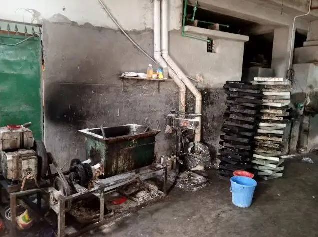 এমন অভিযোগের প্রেক্ষিতে ঈশ্বরদী পৌর শহরের পূর্বটেংরি জিগাতলায় সরেজমিনে গিয়ে দেখা যায় নোংরা পরিবেশ, মেঝেতে ছড়ানো ময়লা জ্বালানি কাঠ-খড়ি, পুরনো পোড়া তেল ও পামওয়েল তেলের ড্রাম। এছাড়া পচেঁ যাওয়া কাঁচামালও রাখা হয়েছে কারখানার ভেতরে।