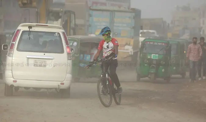 আজ ঢাকার বাতাসে অতিক্ষুদ্র বস্তুকণার পরিমাণ বিশ্ব স্বাস্থ্য সংস্থার (ডব্লিউএইচও) মানদণ্ডের চেয়ে প্রায় ১১ গুণ বেশি রয়েছে।