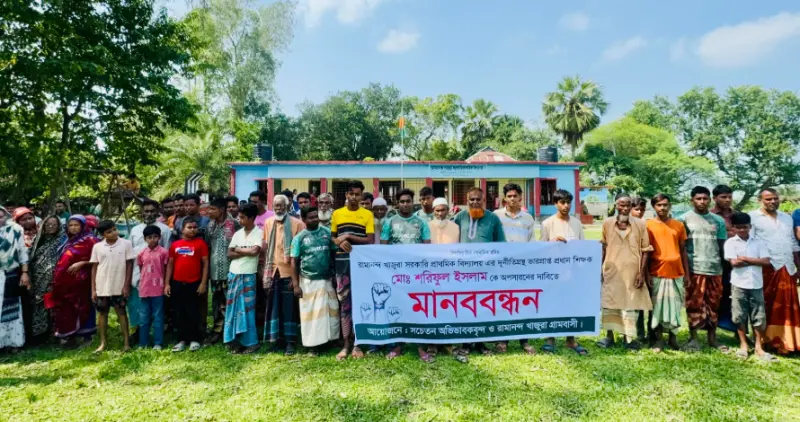 নাটোরের সিংড়া উপজেলার রামানন্দ খাজুরা সরকারি প্রাথমিক বিদ্যালয়ের ভারপ্রাপ্ত প্রধান শিক্ষক শরিফুল ইসলামের অপসারণের দাবিতে এলাকাবাসী মানববন্ধন করেছে।