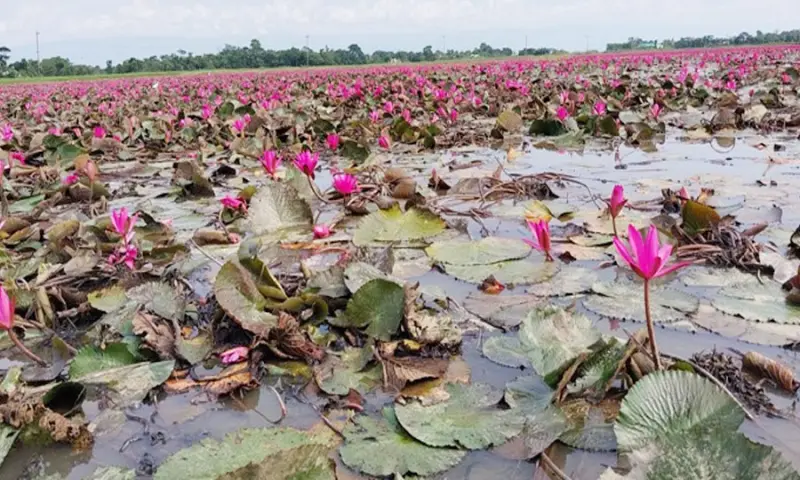 প্রতিবছরের মতো এবারও প্রকৃতি উদার হাতে রাঙিয়েছে দেউন্দি চা-বাগানের এই শাপলা বিল। প্রকৃতিপ্রেমীরা তাই আবারও ফিরে যাচ্ছেন মুগ্ধতায় ভরা এই লাল স্বপ্নলোকের আহ্বানে।
