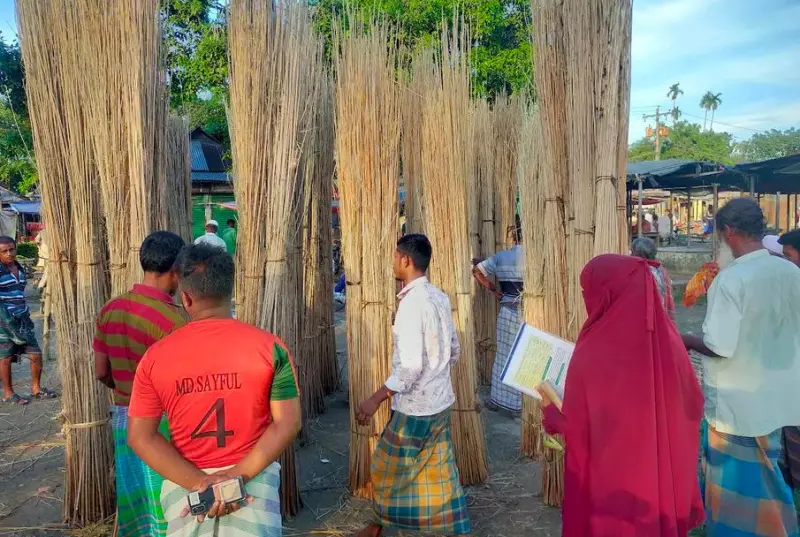 ময়মনসিংহের নান্দাইলে ঐতিহ্যবাহী দেওয়ানগঞ্জ বাজারে বসেছে এই পাটখড়ির হাট। প্রতিদিন বিকালে বসে এই হাট। আর তাই প্রতিদিন এই বাজার থেকে পাটখড়ি কিনছেন গৃহস্থরা। চাহিদা বেশি থাকায় আগের তুলনায় পাটখড়ির দামও বেড়ে গেছে। হাতের কাছে পাটখড়ি পেয়ে খুশি ক্রেতারাও।
