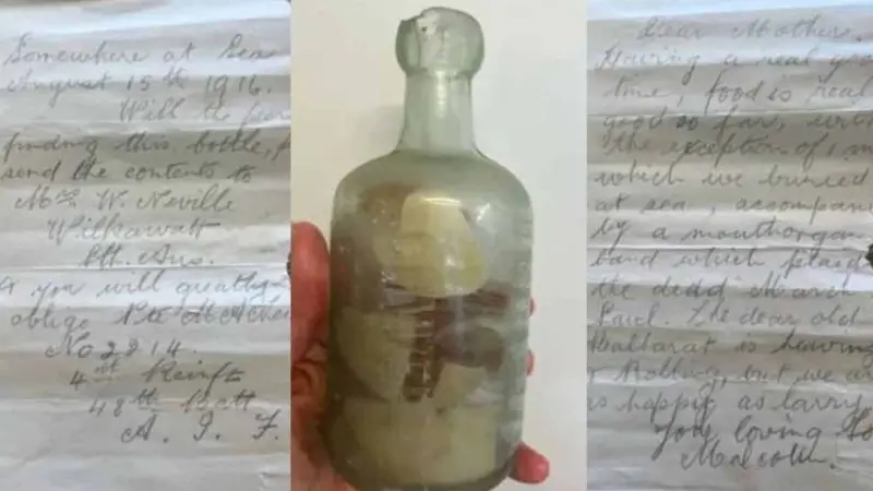 অস্ট্রেলিয়ার সমুদ্র সৈকতে শত বছর পর ভেসে উঠেছে প্রথম বিশ্বযুদ্ধে অংশ নেওয়া ২ সৈন্যের লেখা বোতলবন্দি চিঠি। ১৯১৬ সালে লেখা এই চিঠিগুলো যুদ্ধযাত্রা শুরুর আনন্দে পূর্ণ থাকলেও, এর এক লেখক পরে যুদ্ধক্ষেত্রে প্রাণ হারান।