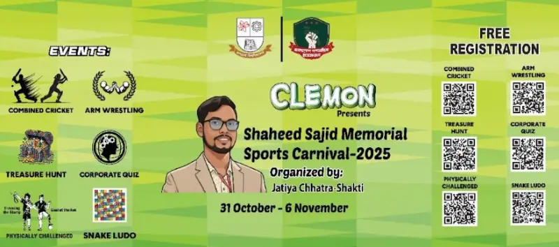 জগন্নাথ বিশ্ববিদ্যালয়ে (জবি) প্রথমবারের মতো আয়োজিত হতে যাচ্ছে বৃহৎ পরিসরের ক্রীড়া উৎসব ‘শহীদ সাজিদ মেমোরিয়াল স্পোর্টস কার্নিভাল–২০২৫ (সিজন: ১)’। আগামী ৪, ৫ ও ৬ নভেম্বর বিশ্ববিদ্যালয় ক্যাম্পাসজুড়ে অনুষ্ঠিত হবে এই বর্ণাঢ্য আয়োজন, যেখানে অংশ নেবে বিভিন্ন অনুষদ ও বিভাগের শিক্ষার্থীরা।