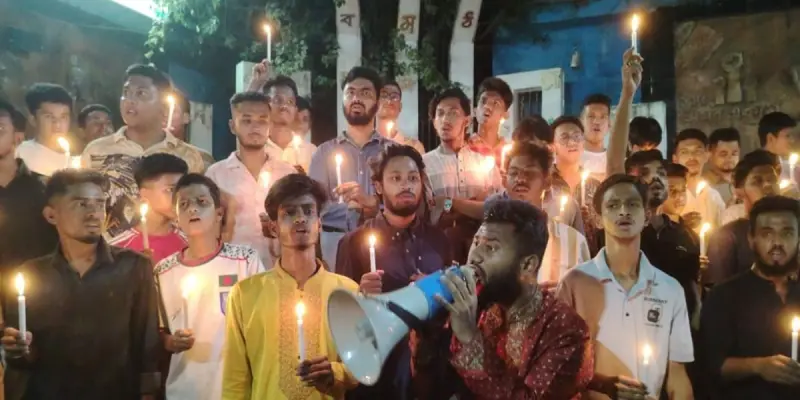 বৃহস্পতিবার (৩০ অক্টোবর) সন্ধ্যা সাড়ে ৬টার দিকে ছাত্র-জনতার আয়োজনে পৌর শহীদ মিনারে এ মোমবাতি প্রজ্জ্বলন কর্মসূচি অনুষ্ঠিত হয়। এসময় তারা বিভিন্ন স্লোগান দিতে থাকেন।