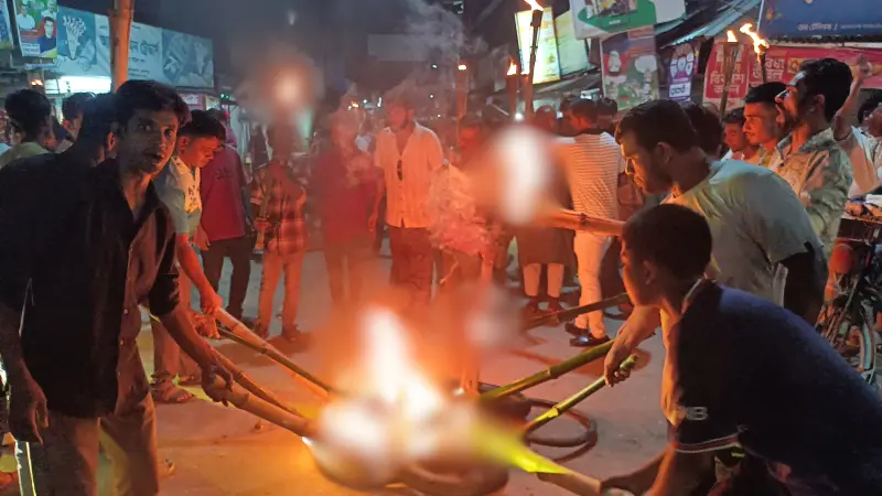 পরে সন্ধ্যায় কমিটির বিরুদ্ধে কঠোর অবস্থান জানিয়ে তারা মশাল হাতে আরেকটি প্রতিবাদী মিছিল বের করেন। এরপর বিক্ষুব্ধ নেতাকর্মীরা ব্যস্ততম এলাকা চৌরাস্তায় টায়ারে আগুন জ্বালিয়ে প্রায় ঘন্টাব্যাপী সড়ক অবরোধ করে রাখেন। এতে চৌরাস্তা এলাকার সড়কে দীর্ঘ যানজটের সৃষ্টি হয়। এরআগে ২৬ অক্টোবর থেকে তারা এই আন্দোলন শুরু করেন।