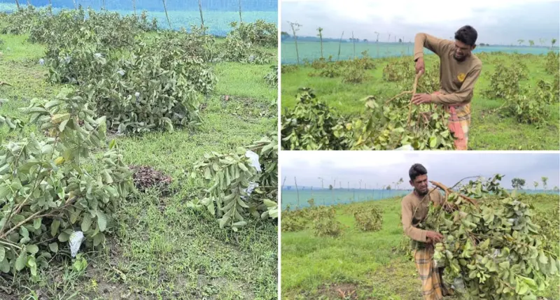 ক্ষতিগ্রস্ত কৃষক জালাল উদ্দিন জানান, প্রায় তিন লাখ টাকা খরচ করে আমি এই পেয়ারা বাগান তৈরি করেছিলাম। নিজের সন্তানের মত লালন পালন করেছি। গাছে প্রচুর পরিমাণে ফল ধরায় আমি এ বছর লাভের আশা করছিলাম। মাত্র কয়েক সপ্তাহ পর ফল বিক্রি শুরু হবে।