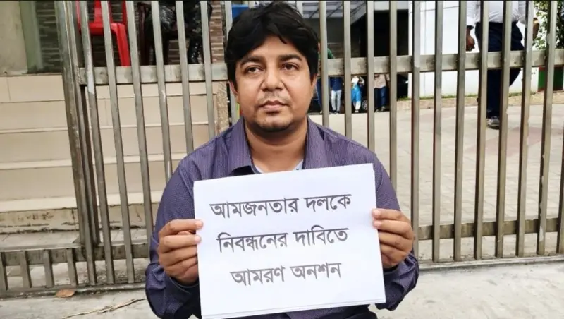নতুন রাজনৈতিক দল হিসেবে নিবন্ধন পায়নি আমজনতার দল। এর প্রতিবাদে নির্বাচন কমিশনের (ইসি) সামনে আমরণ অনশনে বসার ঘোষণা দিয়েছেন দলটির সদস্যসচিব তারেক রহমান।