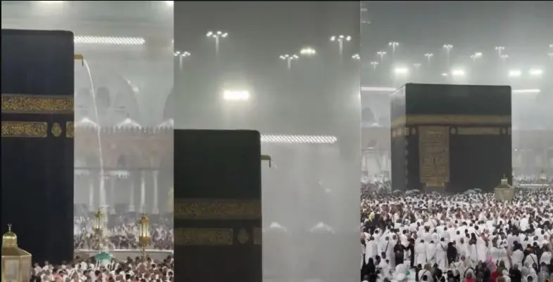 ইনসাইড দ্যা হারামাইনের এক ভিডিওতে দেখা যায়, কাবা শরিফের আশপাশে তাওয়াফ করছেন হাজারো মুসল্লি। এদিকে মুষলধারে বৃষ্টি ঝরছে। আকাশ ডাকছে। আনন্দে মুসল্লিরা ভিজে ভিজেই তাওয়াফ করছেন। মিজাবে রহমত থেকে পানি ঝরছে।