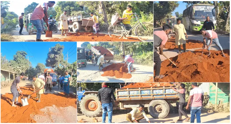 আজ বৃহস্পতিবার (২৭ নভেম্বর) দুপুরে জেলা যুব অধিকার পরিষদের সাধারণ সম্পাদক হাসান আহমেদ রমজানের উদ্যোগে পাকুন্দিয়া উপজেলার এগারসিন্দুর ইউনিয়নের গুরুত্বপূর্ণ কটিয়াদি টু মঠখোলা এবং টোক-কাপাসিয়া সড়কের রাস্তায় থাকা গর্তগুলো ইটের সুরকি ও বালি দিয়ে ভরাট করা হয়। ফলে দীর্ঘদিনের দুর্ভোগ থেকে রক্ষা পেল এই সড়ক ব্যবহারকারীরা।