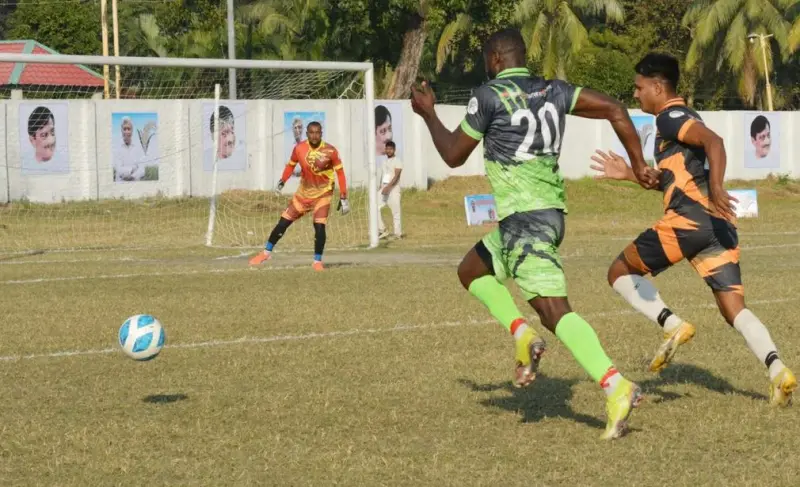 যশোরে তরিকুল ইসলাম স্মৃতি ফুটবল টুর্নামেন্টে তিন বিদেশী খেলোয়াড় সিদ্দিক, জুনিয়র বুয়েটিং ও বেইলজামার গোলে ফাইনাল নিশ্চিত করেছে উপশহর ইউনিয়ন। বৃহস্পতিবার (২৭ নভেম্বর) টুর্নামেন্টের প্রথম সেমিফাইনালে উপশহর প্রতিপক্ষ কাশিমপুর ইউনিয়নকে ৩-০ গোলে পরাজিত কর। যশোর শামস-উল-হুদা স্টেডিয়ামে হাই ভোল্টেজ ম্যাচটি অনুষ্ঠিত হয়।