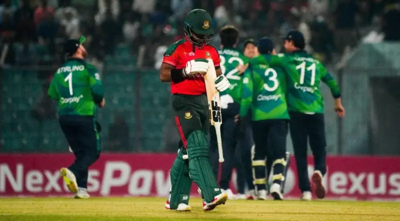 এর আগে দুই ওপেনার পল স্টার্লিং ও টিম টেক্টরের ব্যাটে দারুণ শুরু পায় আয়ারল্যান্ড। বড় হতে যাওয়া এই জুটি ভেঙেছেন তানজিম হাসান সাকিব। ২১ রান করে স্টার্লিং ফিরলে ভাঙে ৪০ রানের উদ্বোধনী জুটি। আরেক ওপেনার টিম করেছেন ৩২ রান।