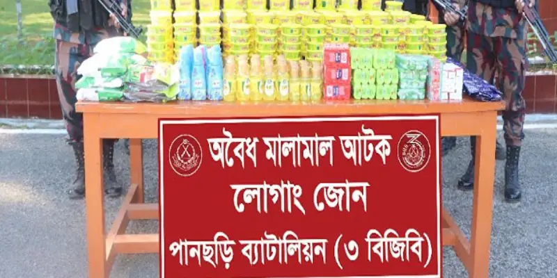 পানছড়িতে পৃথক অভিযানে বিপুল পরিমাণ ভারতীয় চোরাচালানি মালামাল আটক করেছে সীমান্তরক্ষী বাহিনীর পানছড়ি ব্যাটালিয়ন (৩ বিজিবি)-এর বিশেষ টহল দল।