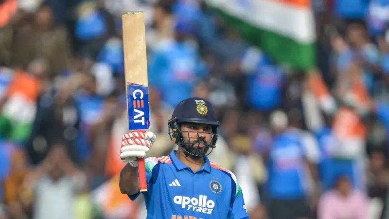 টনি ডি জর্জি ডিপ স্কয়ার লেগে রোহিতের ক্যাচ ছাড়েন। তারপরই প্রথম বাউন্ডারি মারেন তিনি। বিরাট কোহলির সঙ্গে ১০৯ বলে ১৩৬ রান যোগ করেন তিনি। ৪৭ বলে এই ব্যাটার টানা তৃতীয় ও ৬০তম ওয়ানডে হাফ সেঞ্চুরি করেছেন। ৫ চার ও ৩ ছক্কায় ৫১ বলে ৫৭ রান করেন রোহিত।