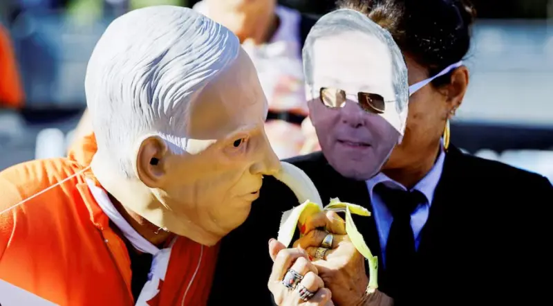 সোমবার তেল আবিবের আদালতের নেতানিয়াহুর বিরুদ্ধে শত শত মানুষ বিক্ষোভ করেছেন। এ সময় কমলা রঙের কারাগারের পোশাক পরে নেতানিয়াহুকে কারাগারে পাঠানোর দাবি জানিয়েছেন তারা।
