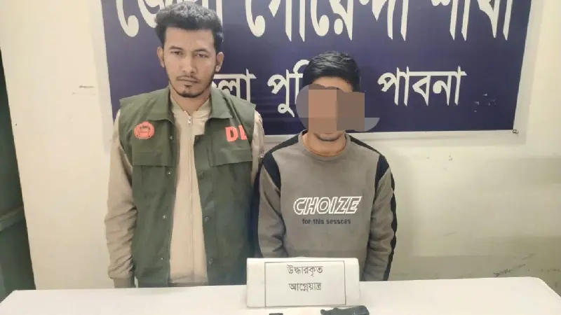 পাবনা গোয়েন্দা পুলিশের ভারপ্রাপ্ত কর্মকর্তা (ওসি) রাশিদুল ইসলাম মঙ্গলবার (০২ ডিসেম্বর) দুপুরে এ তথ্য নিশ্চিত করেছেন। গ্রেপ্তার তুষার ঈশ্বরদী পৌর শহরের ভেলুপাড়া মহল্লার আবু তাহেরের ছেলে।