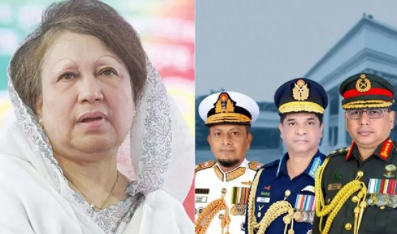 সাবেক প্রধানমন্ত্রী ও বিএনপি চেয়ারপারসন বেগম খালেদা জিয়াকে দেখতে রাজধানীর এভারকেয়ার হাসপাতালে এসেছেন সেনা, নৌ ও বিমান বাহিনীর প্রধান।