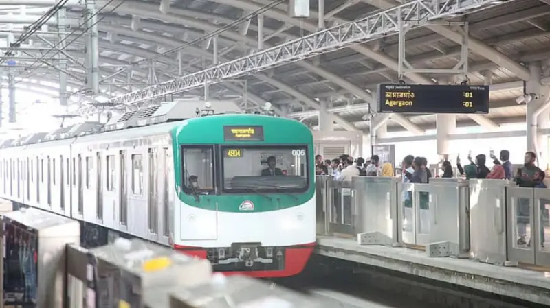 তারে কাপড় পড়ায় ২০ মিনিট বিদ্যুৎচালিত গণপরিবহন মেট্রোরেলের ট্রেন চলাচল বন্ধ ছিল।