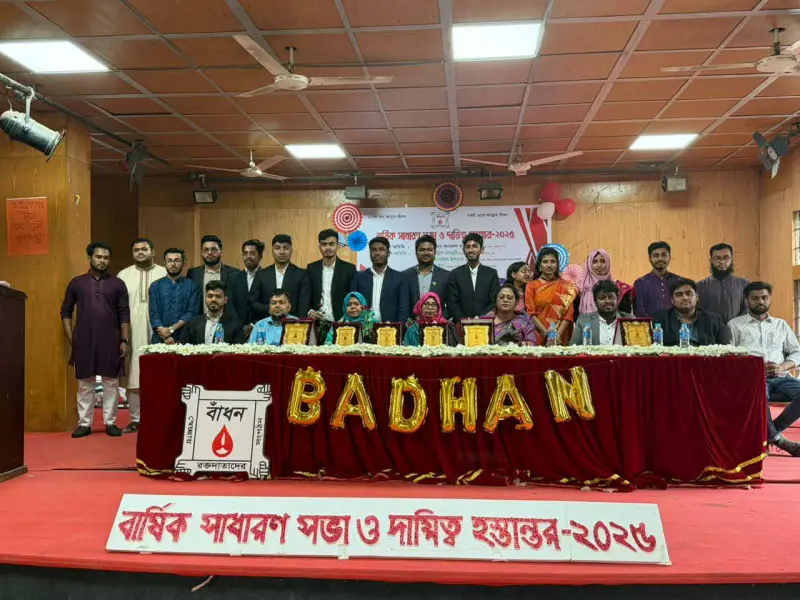 স্বেচ্ছায় রক্তদাতাদের সংগঠন বাঁধন, সরকারি বাঙলা কলেজ ইউনিট এর কার্যকরী পরিষদ-২০২৬ এর কমিটি ঘোষণা করা হয়েছে। কমিটিতে সভাপতি নির্বাচিত হয়েছেন কলেজের গণিত বিভাগ ২০২১-২০২২ শিক্ষাবর্ষের শিক্ষার্থী তানজীর আহম্মেদ ও সাধারণ সম্পাদক হিসেবে দায়িত্ব পেয়েছেন রাষ্ট্রবিজ্ঞান বিভাগ ২০২১-২০২২ শিক্ষাবর্ষের শিক্ষার্থী তন্ময় আহমেদ।