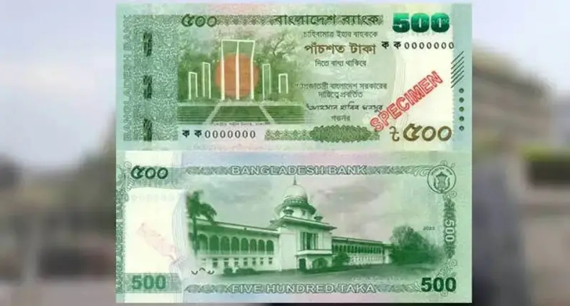 বাংলাদেশ ব্যাংকের পাঠানো এক সংবাদ বিজ্ঞপ্তিতে বলা হয়, নতুন ৫০০ টাকার নোটে থাকছে শহীদ মিনার ও সুপ্রিম কোর্ট। ১৫২ মি.মি. × ৬৫ মি.মি. আকারের নতুন ৫০০ টাকার নোটের সম্মুখভাগে রয়েছে কেন্দ্রীয় শহীদ মিনারের ছবি। পেছনের অংশে মুদ্রিত হয়েছে বাংলাদেশ সুপ্রিম কোর্টের ছবি।