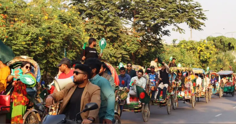 এনসিপির যুগ্ম সদস্য সচিব ও ঢাকা-১৩ আসনের এমপি পদপ্রার্থী আকরাম হোসাইন-এর নেতৃত্বে আয়োজিত এ র্যালিতে অংশ নেন ঢাকা মহানগর উত্তরের আহ্বায়ক আরিফুল ইসলাম আদীব, সদস্য সচিব সরদার আমিরুল ইসলামসহ কেন্দ্রীয় ও স্থানীয় নেতাকর্মীরা। রঙিন সাজসজ্জা ও ব্যানার-ফেস্টুনে সজ্জিত শতাধিক রিকশায় বিপুল সংখ্যক নেতাকর্মী স্বতঃস্ফূর্তভাবে অংশ নিয়ে র্যালিকে উৎসবমুখর করে তোলেন।