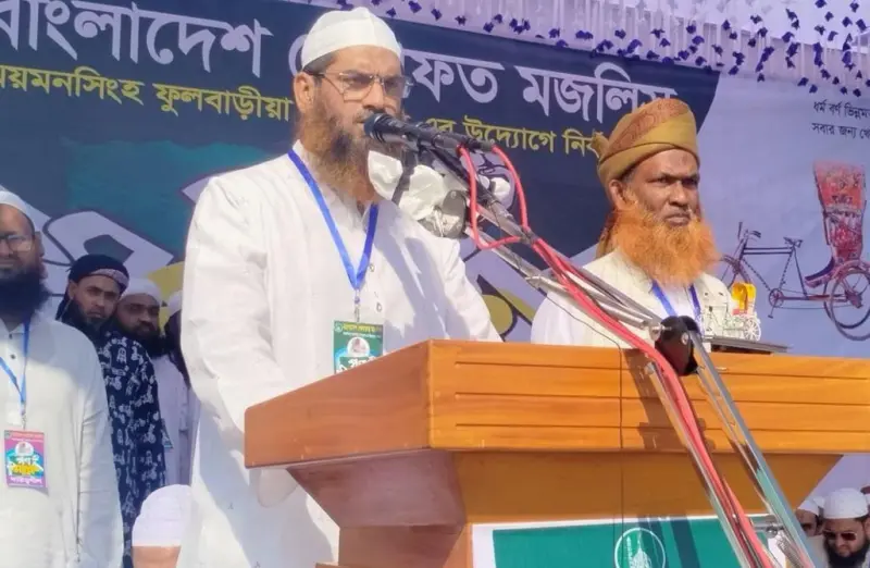 বুধবার (১০ ডিসেম্বর) দুপুরে ময়মনসিংহের ফুলবাড়ীয়া সরকারি মডেল পাইলট উচ্চ বিদ্যালয় মাঠে বাংলাদেশ খেলাফত মজলিস ফুলবাড়ীয়া উপজেলা শাখা আয়োজিত গণসমাবেশে প্রধান অতিথির বক্তব্যে এসব কথা বলেন তিনি।
