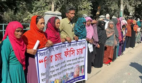 বিক্ষুব্ধদের দাবি, রামকৃষ্ণপুর গ্রামের নাছির মোল্যা ও তার দুই ছেলে নাজমুল হোসেন, ট্যাপা হোসেন এবং নজরুল মোল্লার ছেলে মিরাজুল ইসলাম মিলে নাদিরাকে পরিকল্পিতভাবে হত্যা করেছে। পরে ঘটনা ভিন্নখাতে নিতে মৃতদেহ গাছের ডালে ঝুলিয়ে রাখা হয়েছিল। ঘটনার ১ সপ্তাহ হতে চললেও ঘটনার সঙ্গে জড়িতদের আটক করতে পারেনি পুলিশ। অতি সত্তর তাদের গ্রেপ্তার করে ফাঁসির দাবি করা হয়েছে।