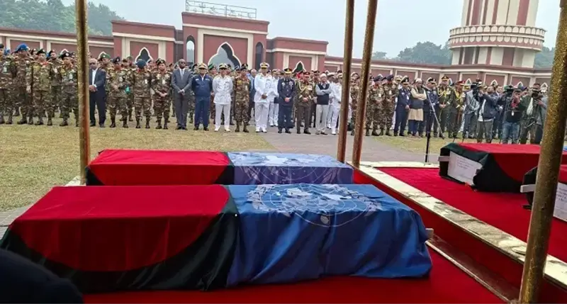 সুদানে জাতিসংঘ শান্তিরক্ষা মিশনে সন্ত্রাসী হামলায় নিহত ৬ বাংলাদেশি শান্তিরক্ষীর জানাজা সম্পন্ন হয়েছে।