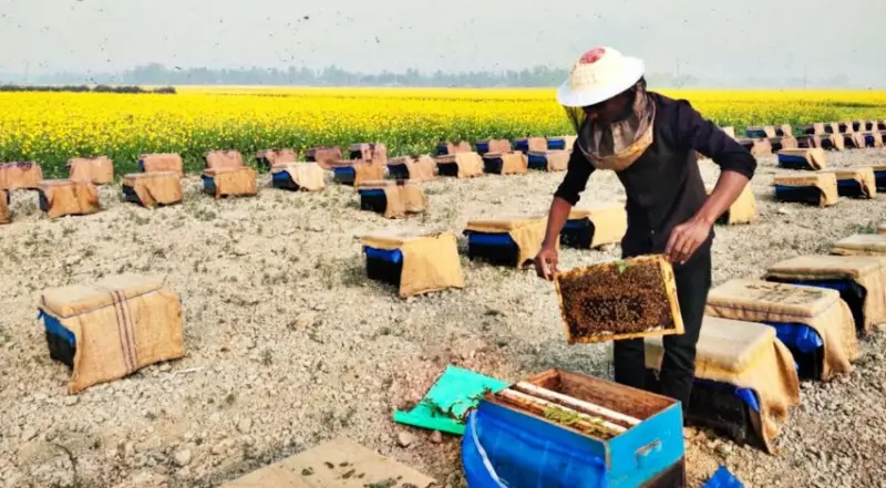সরিষা ফুলে ভরে উঠেছে সিরাজগঞ্জের উল্লাপাড়া উপজেলার বিস্তীর্ণ মাঠ। শীত মৌসুমের শুরুতেই এসব সরিষা ক্ষেতে স্থাপন করা হয়েছে মৌ চাষীদের মধু সংগ্রহের বাক্স। ফলে পুরো এলাকায় এখন মধু উৎপাদনকে ঘিরে বাড়ছে কর্মচাঞ্চল্য। সরিষা চাষের দিক থেকে দেশের শীর্ষ উপজেলা হওয়ায় প্রতি বছরই উল্লাপাড়া মৌ চাষীদের কাছে অন্যতম গুরুত্বপূর্ণ এলাকায় পরিণত হয়।