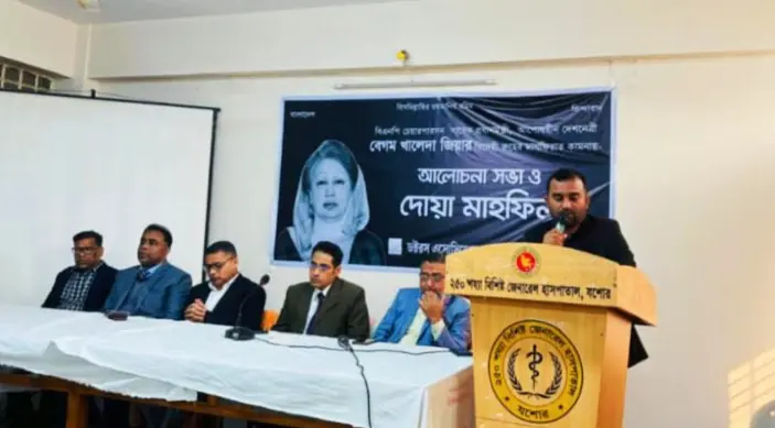 সাবেক প্রধানমন্ত্রী খালেদা জিয়ার রুহের মাগফিরাত কামনায় যশোরে আলোচনা ও দোয়া মাহফিল অনুষ্ঠিত হয়েছে। শনিবার (৩ জানুয়ারি) দুপুরে চিকিৎসকদের সংগঠন ড্যাব যশোর জেলা শাখা এই অনুষ্ঠানের আয়োজন করে।