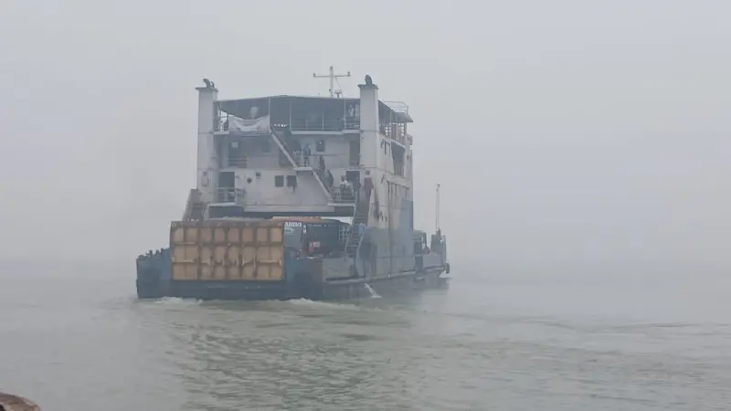 জানা গেছে, শনিবার দিবাগত রাত থেকে পদ্মা নদীর অববাহিকায় কুয়াশার ঘনত্ব বেড়ে যাওয়ায় চ্যানেলের বিকন বাতি ও মার্কিং পয়েন্টগুলো অস্পষ্ট হয়ে পড়ায় নৌ দূর্ঘটনার ঝুঁকি দেখা দেয়। যাত্রী ও যানবাহনের নিরাপত্তার কথা বিবেচনা করেই ফেরি চলাচল বন্ধ রাখার সিদ্ধান্ত দেয় কর্তৃপক্ষ।