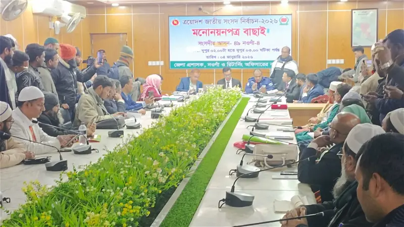 রবিবার (৪ জানুয়ারি) সকাল ১০টা থেকে বিকেল ৫টা পর্যন্ত জেলা প্রশাসকের কার্যালয়ে প্রার্থীদের মনোনয়নপত্র যাচাই-বাছাইয়ের কার্যক্রম চলে। সেখানে জেলা প্রশাসক ও নির্বাচন অফিসার মো: সাইফুল ইসলাম জমাকৃত মনোনয়নত্রের বৈধ ও অবৈধ ঘোষণা করেন।