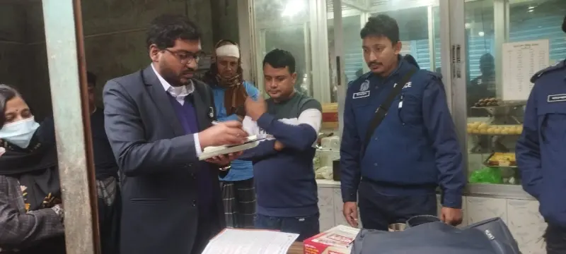 এ সময় নোংরা ও অস্বাস্থ্যকর পরিবেশে পণ্য উৎপাদনের অপরাধে বাংলাদেশ মিষ্টি ভান্ডারের মালিক সুব্রত ঘোষকে উক্ত জরিমানা করা হয়।