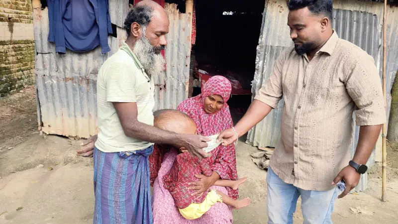 মাত্র ৪ বছরের ছোট্ট শিশু মুসলিমা বিশাল আকৃতির মাথা নিয়ে সারাক্ষণ যন্ত্রনায় চিৎকার করছে। জন্মের পর থেকেই শরীরের তুলনায় মাথা অস্বাভাবিক বড় নিয়ে পৃথিবীতে আসে শিশু মুসলিমা আক্তার। দরিদ্র পরিবারের পক্ষে তার চিকিৎসা করানো সম্ভব না হওয়ায় মানুষের দ্বারে দ্বারে ঘুরছেন বাবা মা। সবার একটু সহযোগিতাই পারে ছোট্ট মুসলিমার জীবন বাঁচাতে। কষ্ট দূর করতে।