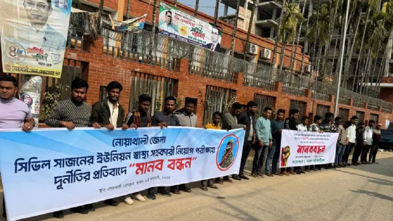 স্মারকলিপিতে বলা হয়েছে, গত ১০ জানুয়ারি নোয়াখালী সিভিল সার্জনের কার্যালয়ের অধীনে স্বাস্থ্য সহকারী পদে নিয়োগের লিখিত পরীক্ষা অনুষ্ঠিত হয়। পরীক্ষা এমসিকিউ পদ্ধতিতে না হয়ে লিখিত আকারে গ্রহণ করা হয়। পরীক্ষার্থীদের প্রশ্নপত্রের সঙ্গে উত্তরপত্র সরবরাহ করে লিখিতভাবে উত্তর দিতে বলা হয়। এতে প্রায় ৮ হাজার পরীক্ষার্থী অংশগ্রহণ করেন। পরীক্ষা শেষ হওয়ার মাত্র ১১ থেকে ১২ ঘণ্টার ব্যবধানে একই দিন রাতেই সিভিল সার্জনের কার্যালয়ের অফিসিয়াল ওয়েবসাইটে ফলাফল প্রকাশ করা হয়। যা একটি লিখিত পরীক্ষার ক্ষেত্রে অস্বাভাবিক ও প্রশ্নবিদ্ধ বলে প্রতিয়মান হয়। এছাড়া সামাজিক যোগাযোগমাধ্যমে প্রকাশিত তথ্যে জানা যায়, পরীক্ষায় অংশ না নিয়েও কয়েকজনের রোল নম্বর চূড়ান্ত ফলাফলে অন্তর্ভুক্ত রয়েছে।