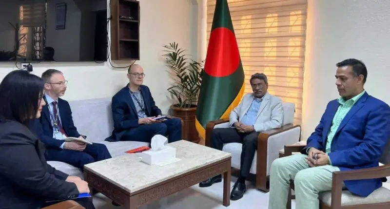 মঙ্গলবার (১৩ জানুয়ারি) বিকেলে তারা এ সৌজন্য সাক্ষাৎ করেন। এ সময় প্রধান উপদেষ্টার বিশেষ সহকারী মনির হায়দার উপস্থিত ছিলেন।
