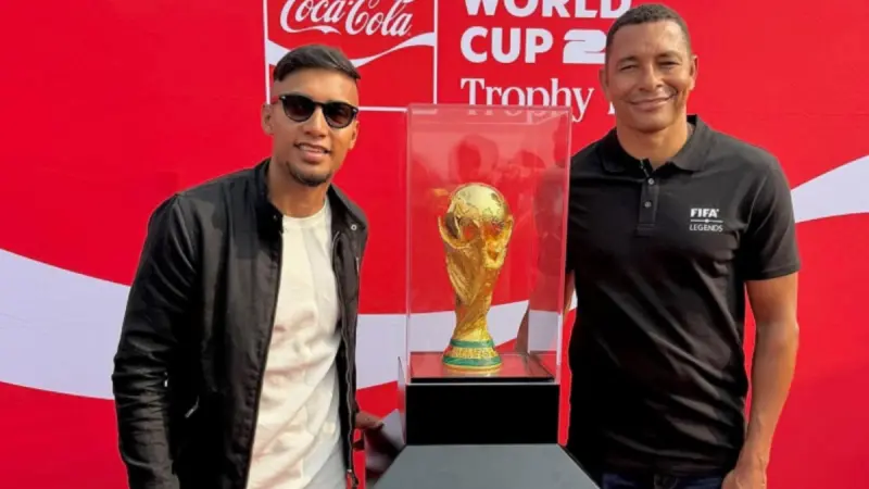 যুক্তরাষ্ট্র, কানাডা ও মেক্সিকোতে অনুষ্ঠিতব্য আসন্ন ফুটবল বিশ্বকাপকে সামনে রেখে বিশ্বভ্রমণের অংশ হিসেবে বুধবার সকালে ঢাকায় পৌঁছেছে ট্রফিটি।