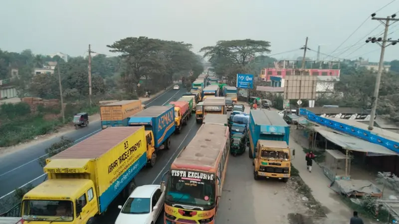 শুক্রবার (১৬ জানুয়ারি) ভোর ৪টা থেকে গজারিয়া অংশে প্রায় ১৩ কিলোমিটার এলাকাজুড়ে দীর্ঘ এ যানজটে স্থবির হয়ে পড়ে যান চলাচল।