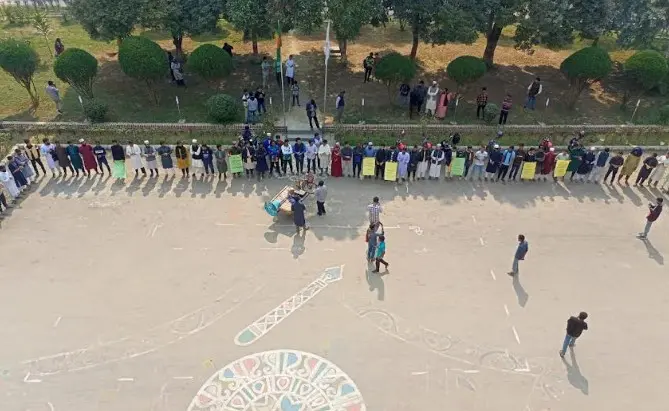 বুধবার (২৮ জানুয়ারি) দুপুরে বিশ্ববিদ্যালয়ের প্রশাসন ভবন চত্ত্বরে এ মানববন্ধন করে তারা।