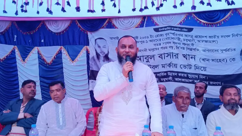 আসন্ন ত্রয়োদশ জাতীয় সংসদ নির্বাচনে ফরিদপুর-১ (আলফাডাঙ্গা, বোয়ালমারী ও মধুখালী) আসনে স্বতন্ত্র প্রার্থী মো. আবুল বাসার খানের নির্বাচনী প্রচার এখন তুঙ্গে। 'ফুটবল' প্রতীক নিয়ে দিনরাত ভোটারদের দ্বারে দ্বারে যাচ্ছেন তিনি।