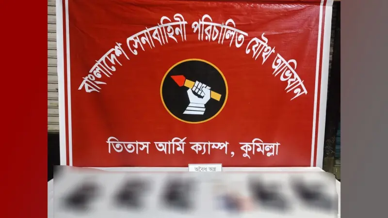 • তিতাসে যৌথ বাহিনীর অভিযানে অস্ত্রের চালান উদ্ধার