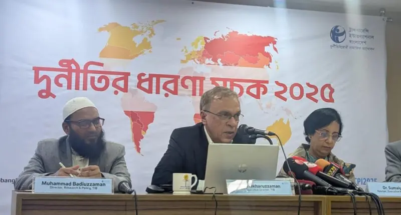 আজ মঙ্গলবার (১০ ফেব্রুয়ারি) রাজধানীর ধানমন্ডির মাইডাস সেন্টারে ট্রান্সপারেন্সি ইন্টারন্যাশনাল বাংলাদেশ (টিআইবি) আয়োজিত সংবাদ সম্মেলনে এ তথ্য তুলে ধরা হয়। ট্রান্সপারেন্সি ইন্টারন্যাশনালের (টিআই) ‘দুর্নীতির ধারণা সূচক (সিপিআই) ২০২৫’ প্রকাশ করেন টিআইবির নির্বাহী পরিচালক ড. ইফতেখারুজ্জামান।